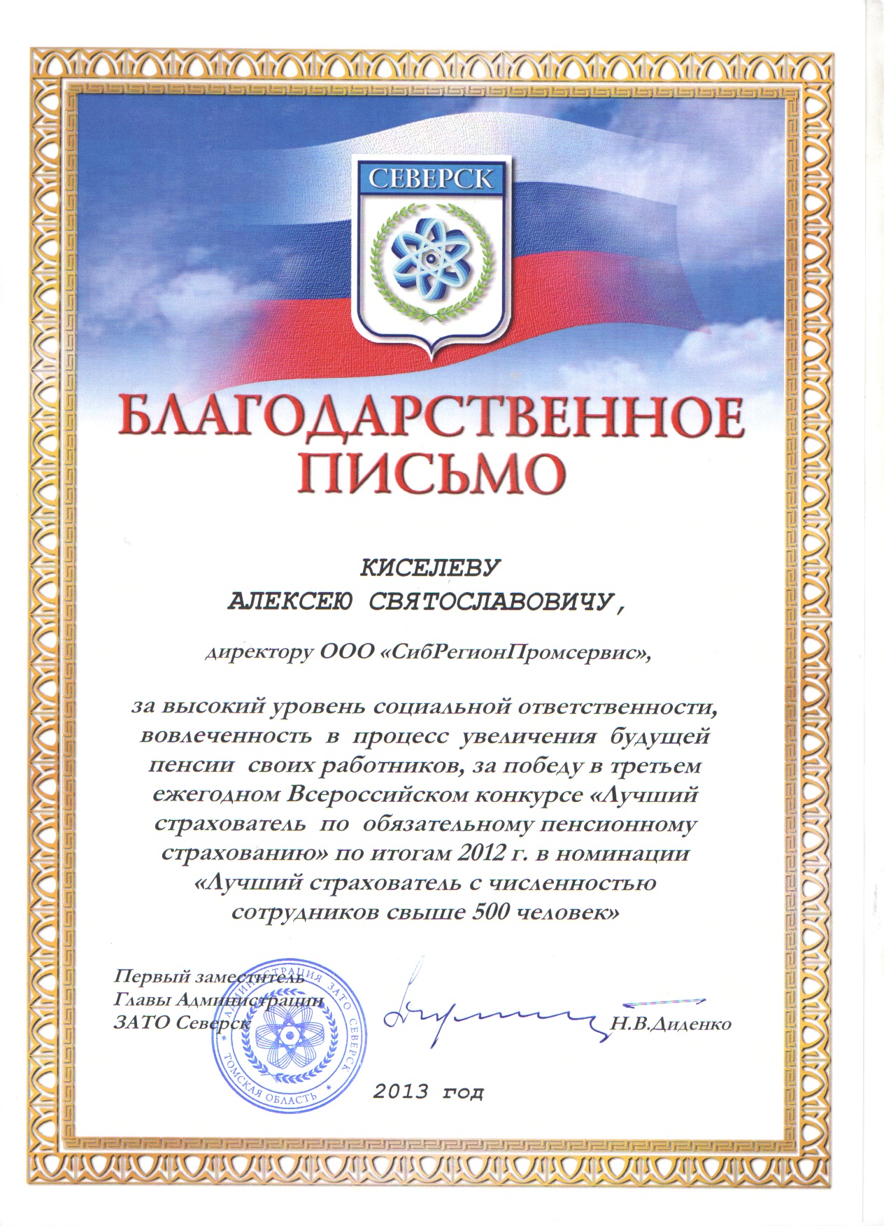 "СибРегионПромсервис" - «Лучший страхователь»